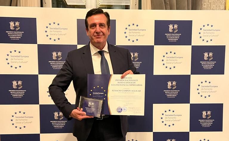 El viernes 21 de abril la Sociedad Europea de Fomento Social y Cultural premió a Don Ignacio Campoy en la II edición de los Premios Nacionales Reyes Católicos a la Excelencia Empresarial